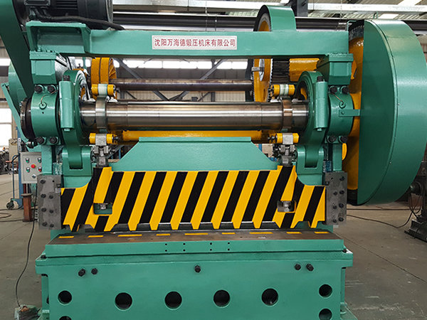 平行刃剪切機的兩個剪刃是彼此平行的,它一般用來在熱態下橫向剪切方形及矩形斷面的鋼坯。也可用來冷剪型材,將刀片做成成型剪刃來剪切非矩形斷面的軋種。平行刃剪切機按剪切組織的運動特色,分為上切式和下切式兩種型式。上切式剪切機的下剪刃是固定的;由上剪刃的上下運動進行剪切。其剪切組織一般選用:曲柄連桿組織。下切式剪切機的兩個剪刃都運動,剪切進程是通過下剪刃上升來實現剪切的。其剪切組織一般有偏心軸式和浮動式。